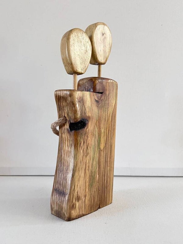 Couple in love unity hand made wood figurine
